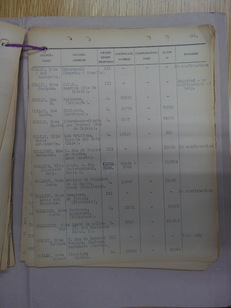 Rapport Sgt Cammish: - ( I took off from SKELLINGTHORPE about 1830 hrs on 25 Feb 44 in a Lancaster aircraft to bomb AUGSBURG. On the way out we were hit by two enemy fighters about ten miles West of STRASBOURG. The pilot took evasive action, but, as the controls were u/s and the aircraft was on fire, he gave the order to bale out. I came down near EMBERMENIL (GERMANY, 1:250,000, Sheet 49, Q 20) about 2300 hrs (25 Feb) on the embankment of the STRASBOURG-PARIS railway. After burying my parachute in the snow I set off walking along the railway line. When I came to the station I heard two men talking in French. After listening for about half an hour I went up to the two men and asked them for help. I had hit my ankle in baling out and by now it was very swollen and made walking almost impossible. The men took me to a house in the village, where I was given civilian clothes and a meal. From this point my journey was arranged for me. APPENDIX C - The two porters whom I met in the station at EMBERMENIL (Sheet 49, Q 20) on 25 Feb 44 took me to the house of M. and Mme Georgette COLLIN who also lived in EMBERMENIL. They kept me for three days and during this time fitted me out with civilian clothes. About 0700 hrs on 28 Feb one of the two porters took me to the station and guided me to LUNEVILLE (6.30°E, 48.60°N.) where he took me to a house belonging to a member of the resistance organisation. I believe the woman who owned this house was called Mme. CHAPLEUR. She and her daughter ran a general store and her son had been deported to GERMANY. While I was here I was told that my navigator (Sgt. GILSON) had been killed. I also met my rear gunner (Sgt. TAYLOR) at this house. We were here together for two or three days and were both given identity cards. Our R.A.F. photographs were not used, as we were told that they were "no good". In the early afternoon of 1 Mar, TAYLOR and I were taken by a member of the resistance organisation and the same porter who had guided me to LUNEVILLE, to NANCY (N.W. EUROPE, 1:250,000, Sheet 9, U 81). There we were taken to a house belonging to a doctor who was also in the resistance movement. This doctor (name and address unknown) telephoned to the Chief of Police (M. VAN DROMME) who sent a gendarme in a car to take us away. At VAN DROMME's house we met our wireless operator (F/Sgt. ANSELL). VAN DROMME told us that he had a son serving with the fighting French Navy in the U.K. His son's address was:- Quartier-maitre Robert VAN DROMME, either P.O. Box 255, Postal Section 644, London, or P.O. Box 244, Postal Section 655, London. Original) - ( PARTIE I - WO 208/3320/1944 - Source : Nat Arch UK - Traduction Ph Laroyenne): J'ai décollé de Skellingthorpe vers 18h30 le 25 février 1944 à bord d'un Lancaster pour bombarder Augsbourg. En route, nous avons été touchés par deux chasseurs ennemis à une quinzaine de kilomètres à l'ouest de Strasbourg. Le pilote a effectué une manœuvre d'évitement, mais, les commandes étant hors service et l'avion en feu, il a donné l'ordre de sauter en parachute. J'ai atterri près d'Embermenil (Feuille 49, ZNG wQ2303) vers 23h00 (25 février) sur le talus de la voie ferrée Strasbourg-Paris. Après avoir enfoui mon parachute dans la neige, j'ai commencé à marcher le long de la voie ferrée. Arrivé à la gare, j'ai entendu deux hommes parler français. Après avoir écouté pendant une demi-heure environ, je me suis approché d'eux et leur ai demandé de l'aide. Je m'étais blessé à la cheville en sautant et elle était maintenant très enflée, ce qui rendait la marche presque impossible. Les hommes m'ont conduit dans une maison du village, où l'on m'a donné des vêtements civils et un repas. À partir de là, mon voyage a été organisé. ANNEXE C - Les deux porteurs que j'ai rencontrés à la gare d'Embermenil le 25 février 1944 m'ont emmené chez Mr et Mme Georgette Collin, qui habitaient également à Embermenil. Ils m'ont gardé trois jours et, pendant ce temps, m'ont fourni des vêtements civils. Vers 7 h le 28 février, l'un des deux porteurs m'a ramené à la gare et m'a conduit à Lunéville (6,30°E, 48,60°N) où il m'a emmené dans une maison appartenant à un membre de la Résistance. Je crois que la propriétaire de cette maison s'appelait Mme Chapleur. Elle et sa fille tenaient une épicerie et son fils avait été déporté en Allemagne. Pendant que j'étais là, on m'a annoncé que mon navigateur (le Sgt Gilson) avait été tué. J'ai également rencontré mon mitrailleur arrière (le Sgt T J Taylor) dans cette maison. Nous y sommes restés deux ou trois jours et avons reçu chacun une carte d'identité. Nos photos de la RAF n'ont pas été utilisées, car on nous a dit qu'elles étaient « inutilisables ». En début d'après-midi du 1er mars, Taylor et moi avons été conduits par un membre de la Résistance et le même porteur qui m'avait guidé jusqu'à Lunéville, à Nancy (Feuille 9, ZNG vU8512). Là, nous avons été emmenés chez un médecin, lui aussi résistant. Ce médecin (dont j'ignore le nom et l'adresse) a téléphoné au commissaire de police (Mr Van Dromme) qui a dépêché un gendarme en voiture pour nous emmener. Chez Van Dromme, nous avons rencontré notre opérateur radio (le sergent-chef Ansell). Van Dromme nous a dit qu'il avait un fils servant dans la marine française combattante au Royaume-Uni. L'adresse de son fils était : Quartier-maître Robert Van Dromme, soit B.P. 255, Section postale 644, Londres, soit B.P. 244, Section postale 655, Londres. Rapport Sgt Cammish: - ( We remained with VAN DROMME for six days, and on 6 Mar we were taken in a police car to MAZERULLES (Q 0119). Here we were taken to the house of M. DURANT who was the head of the resistance movement for that area. We remained with him for about five weeks. During that time he received some arms and ammunition by plane. DURANT was anxious to explain to me all the arrangements he had for the receiving of arms, etc., b